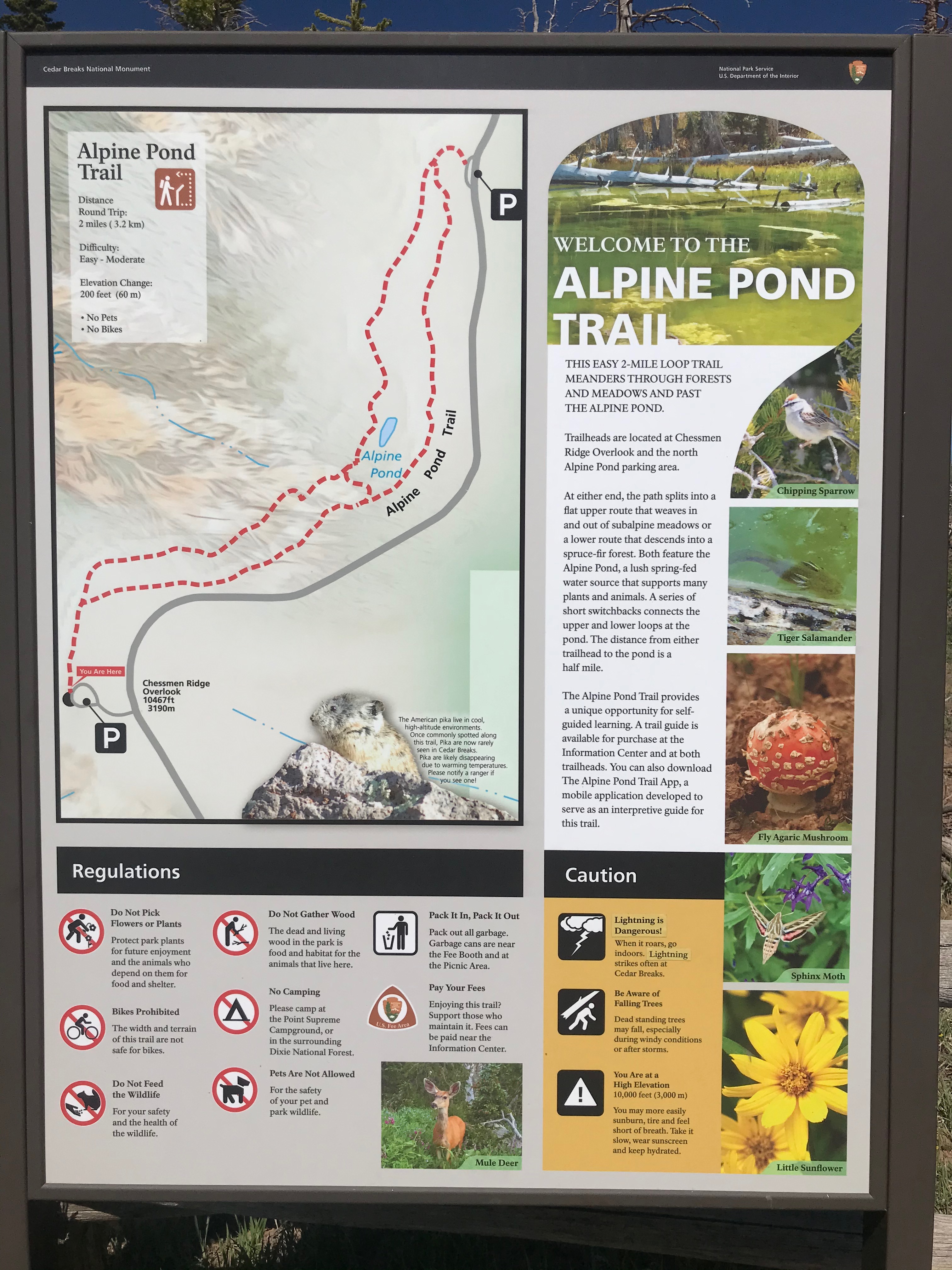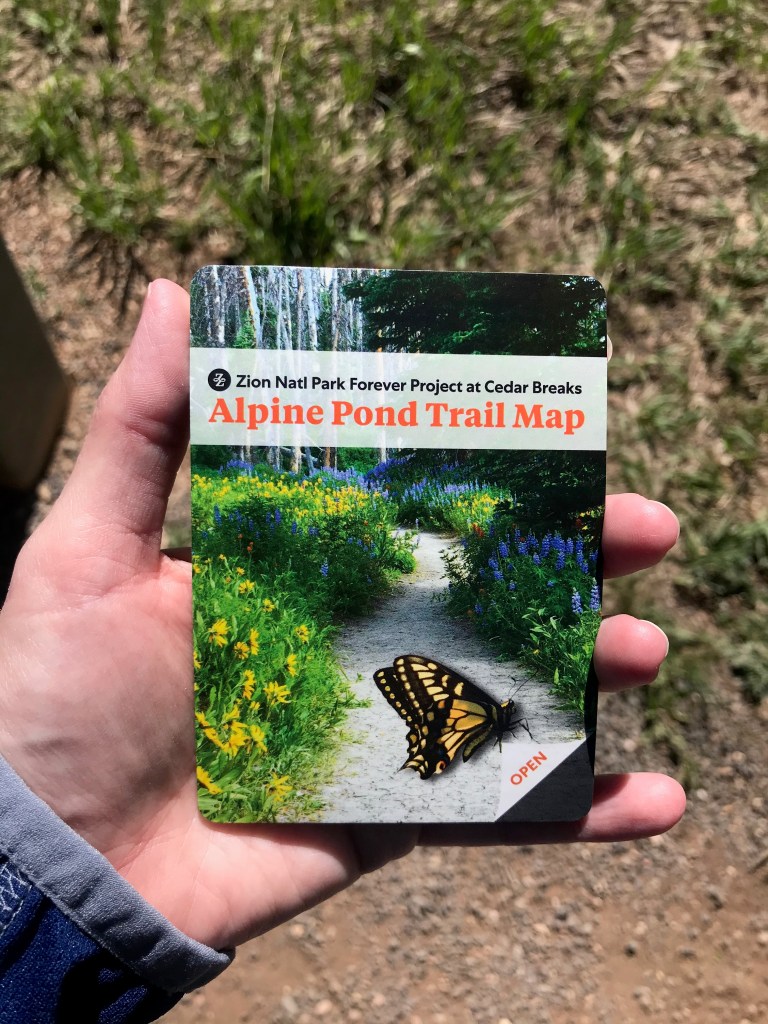 There was a small box at the trailhead that included Alpine Pond Trail Maps for a small donation. The map was super helpful for pointing out interesting facts along the trail. You can learn more about the Zion National Park Forever Project at Cedar Breaks at this link: https://zionpark.org/cedar/
