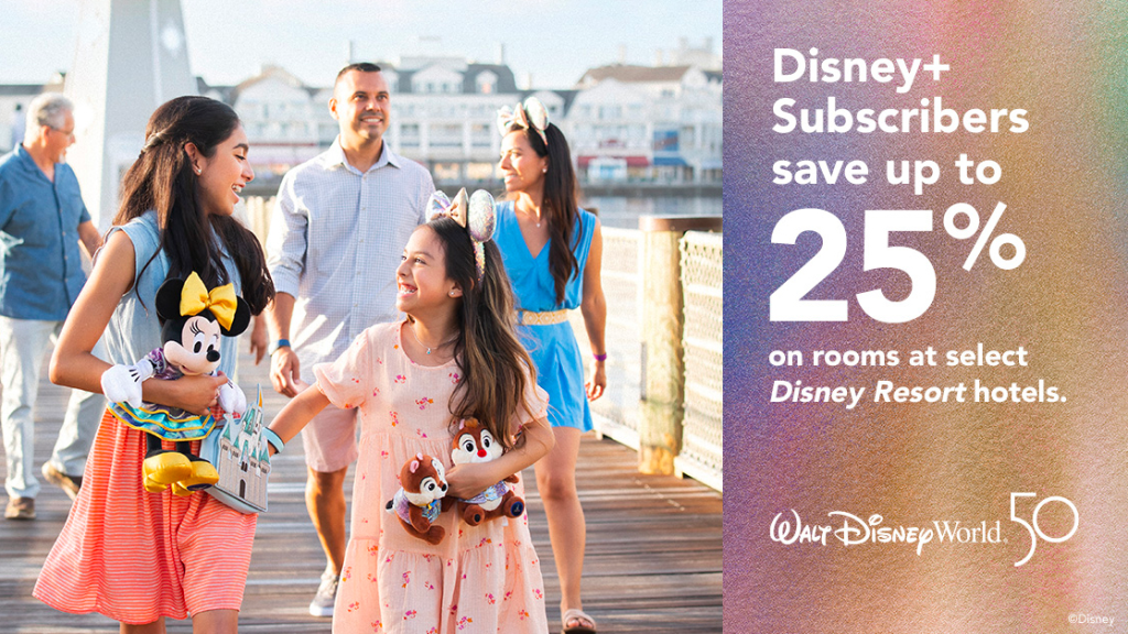 For the first time, Disney+ subscribers can save up to 25% on rooms at select Walt Disney World Resort hotels! Bookings are now available for visits between July 8 through September 30, 2022.