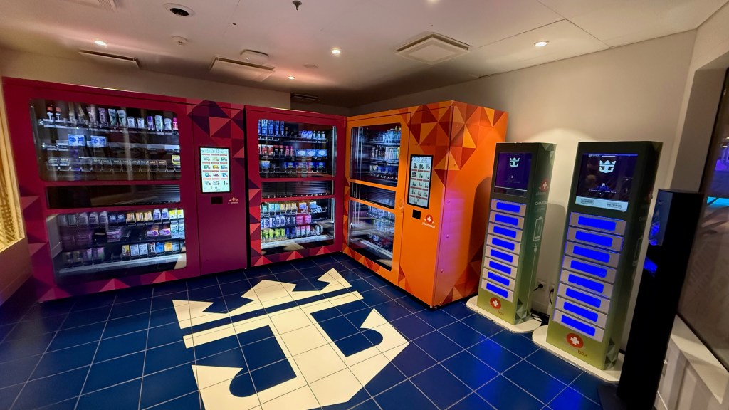 Royal Caribbean has started to make things easier. On Oasis of the Seas, there’s a vending machine stocked with travel-size sundries, snacks, and even tech items. Handy—but you still can’t count on everything being available. If it’s something you need, bring it with you.